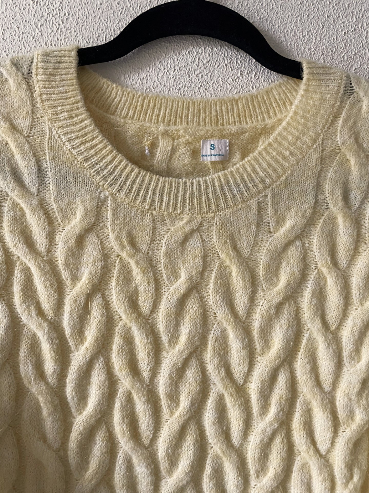 Kabeltrui in butteryellow kleur van een mooie wolmix.