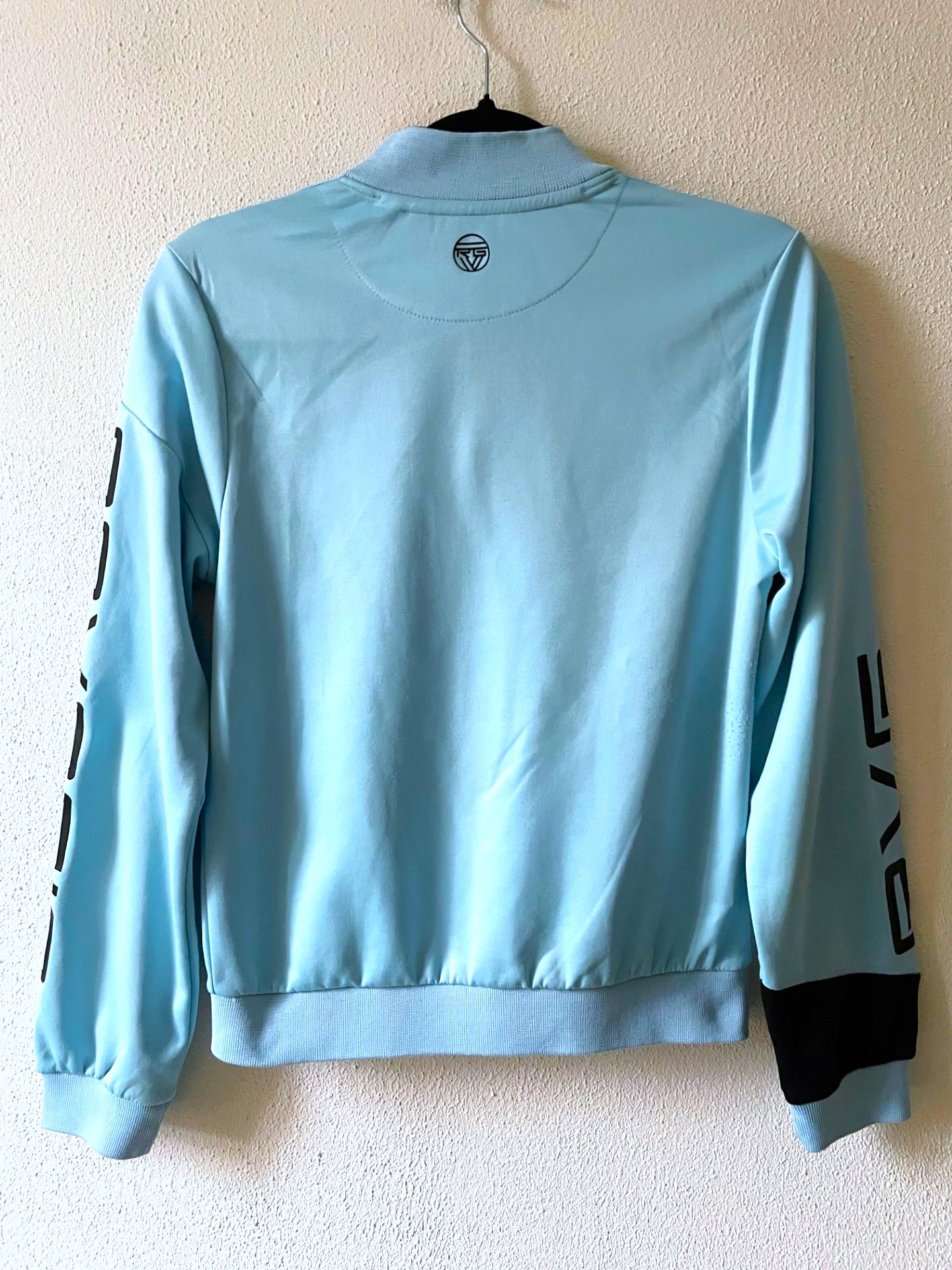 Trainingsjasje in turquoisetint met sportieve details.
