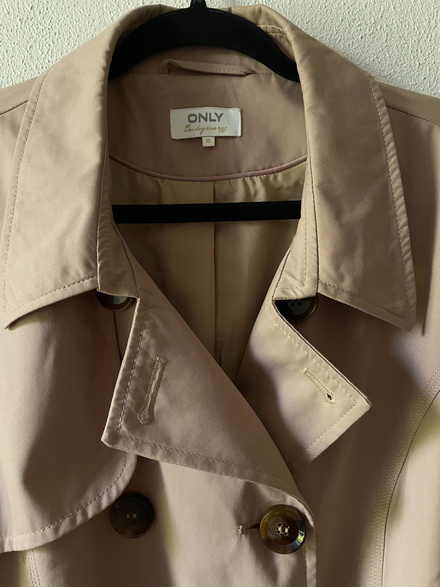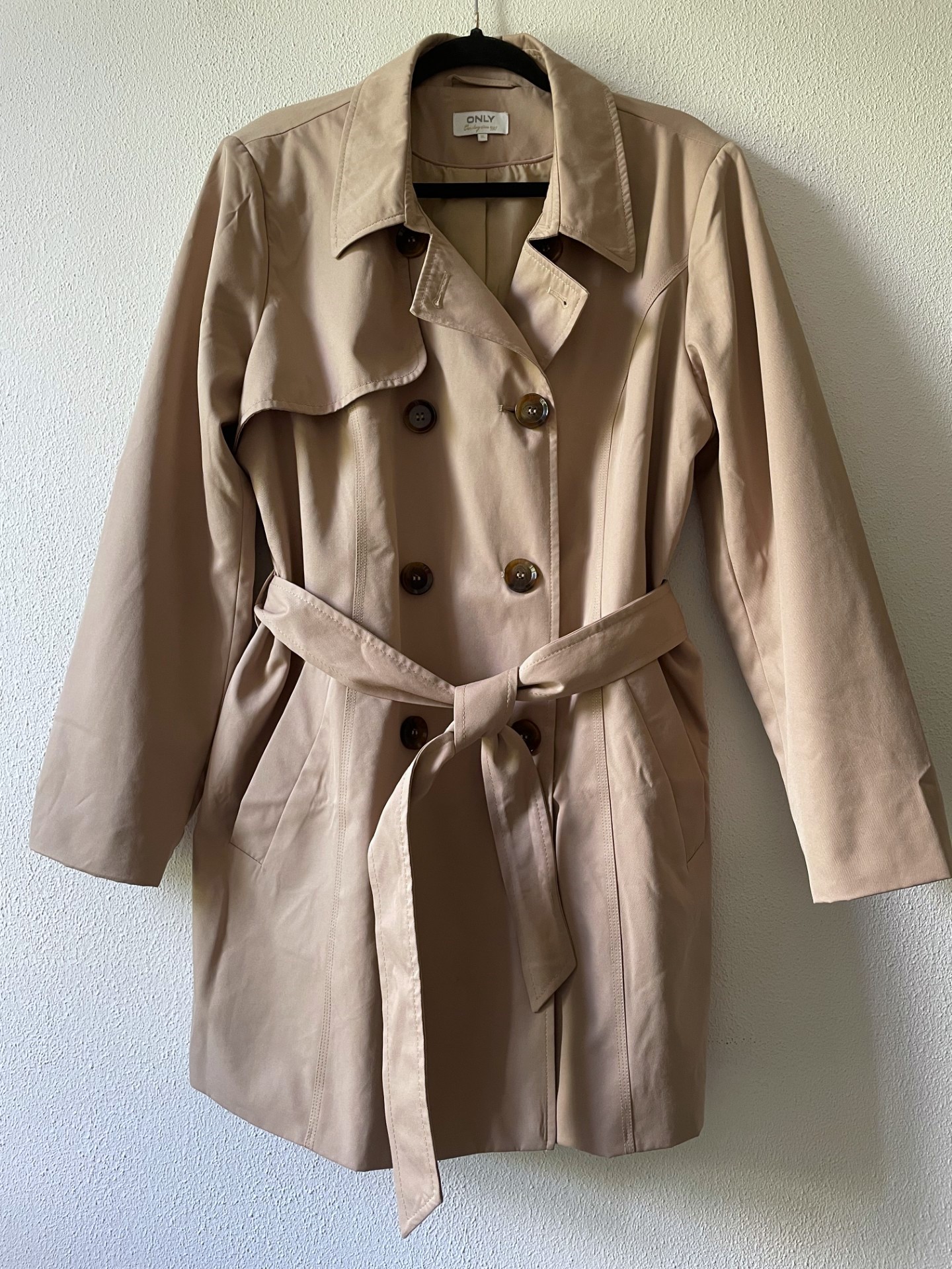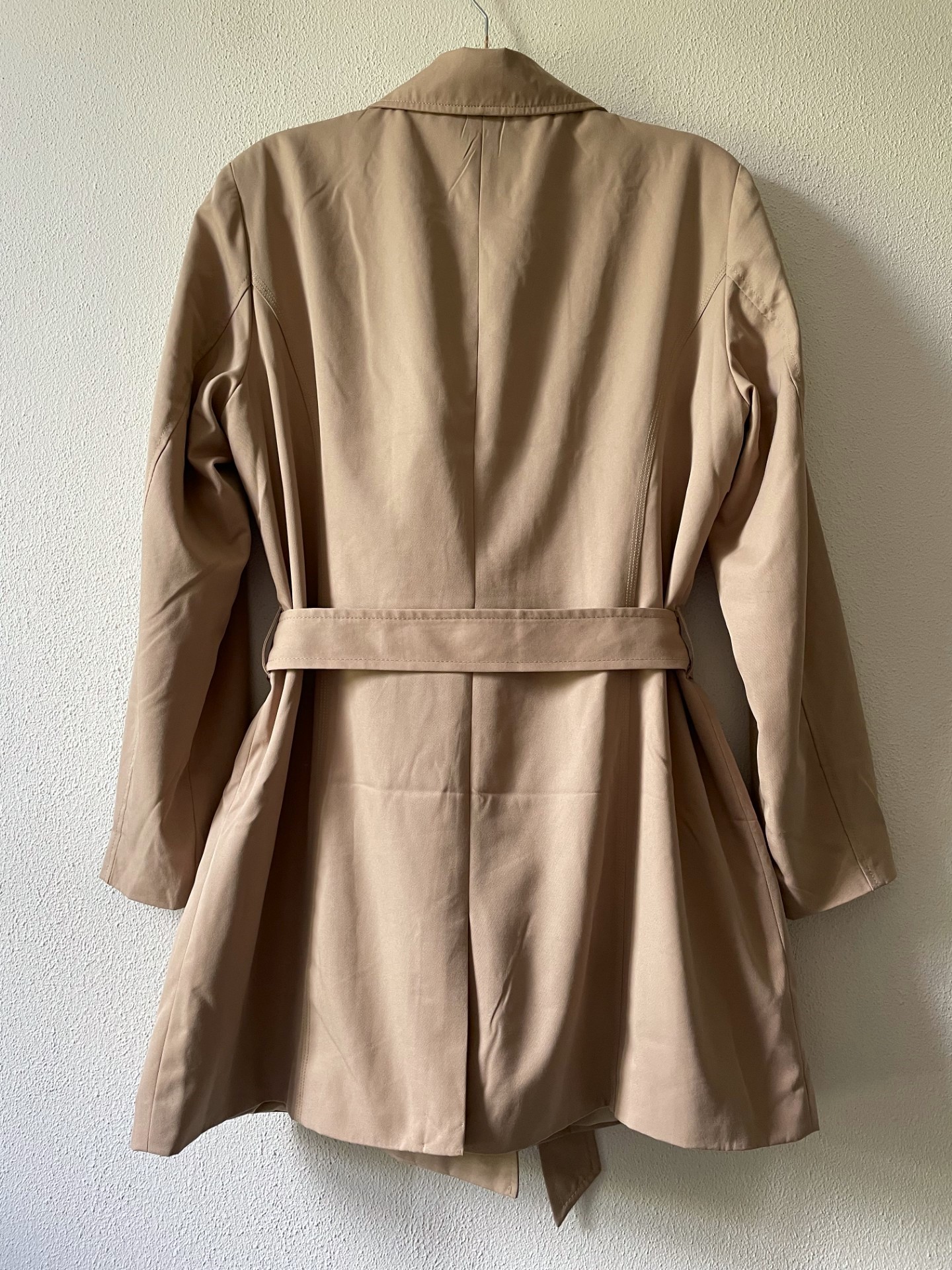 Halflange zandkleurige trenchcoat in double breast model met ceintuur. Heerlijk zachte stof!