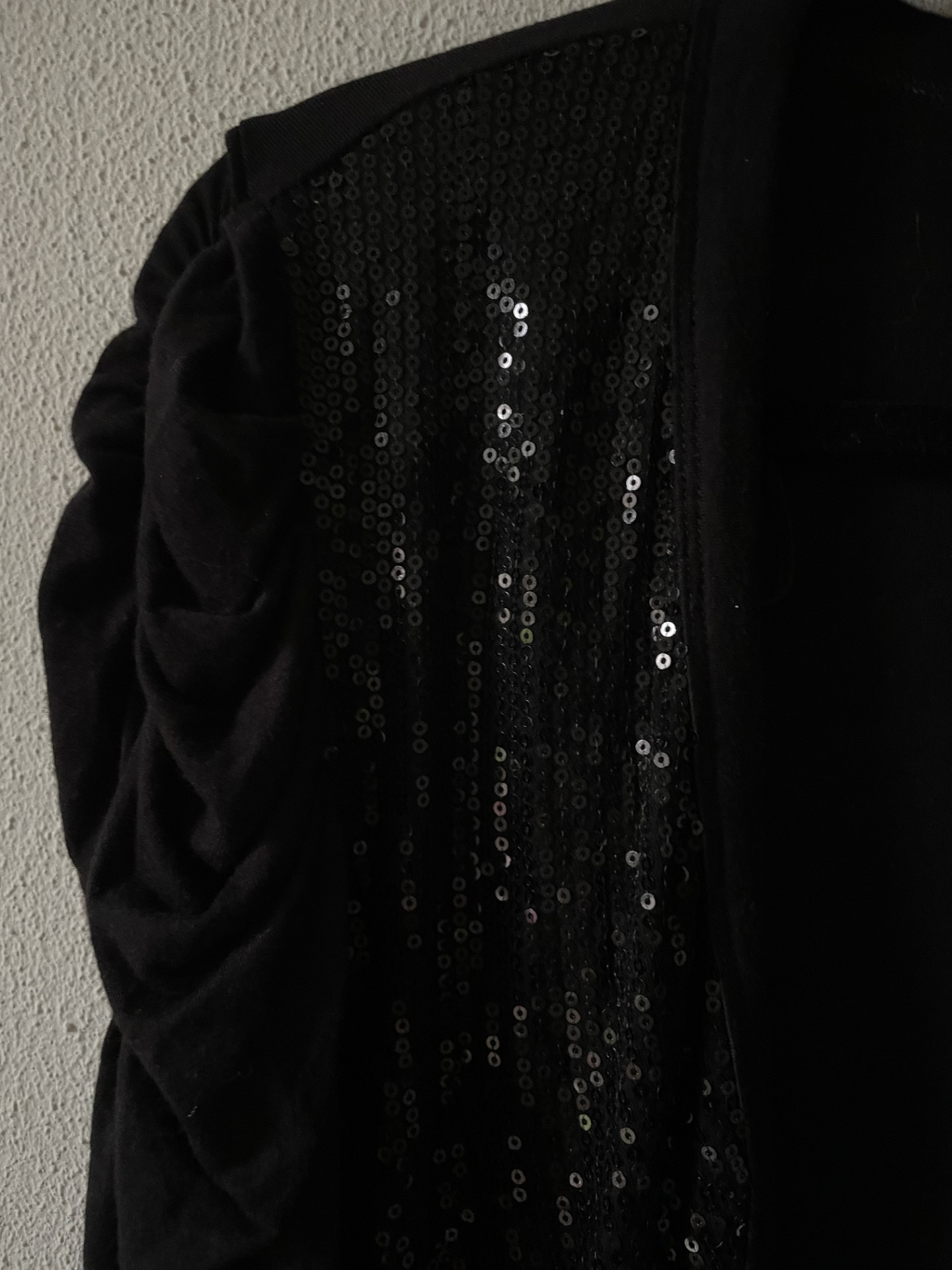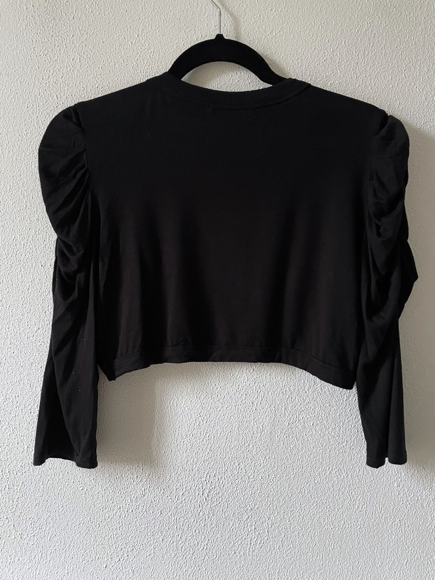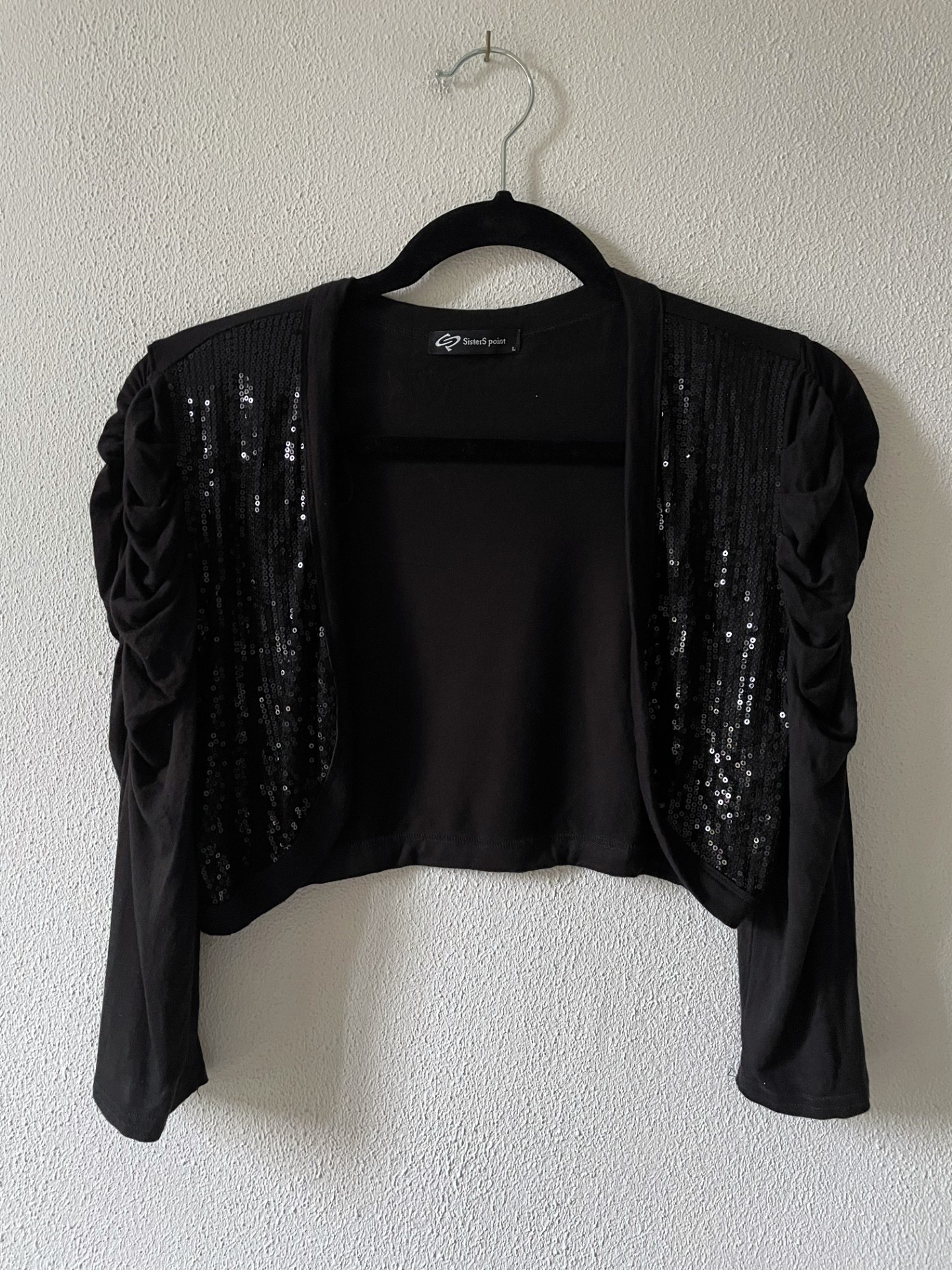 Zwarte bolero met driekwart pofmouwen en pailletten van een zacht viscose.