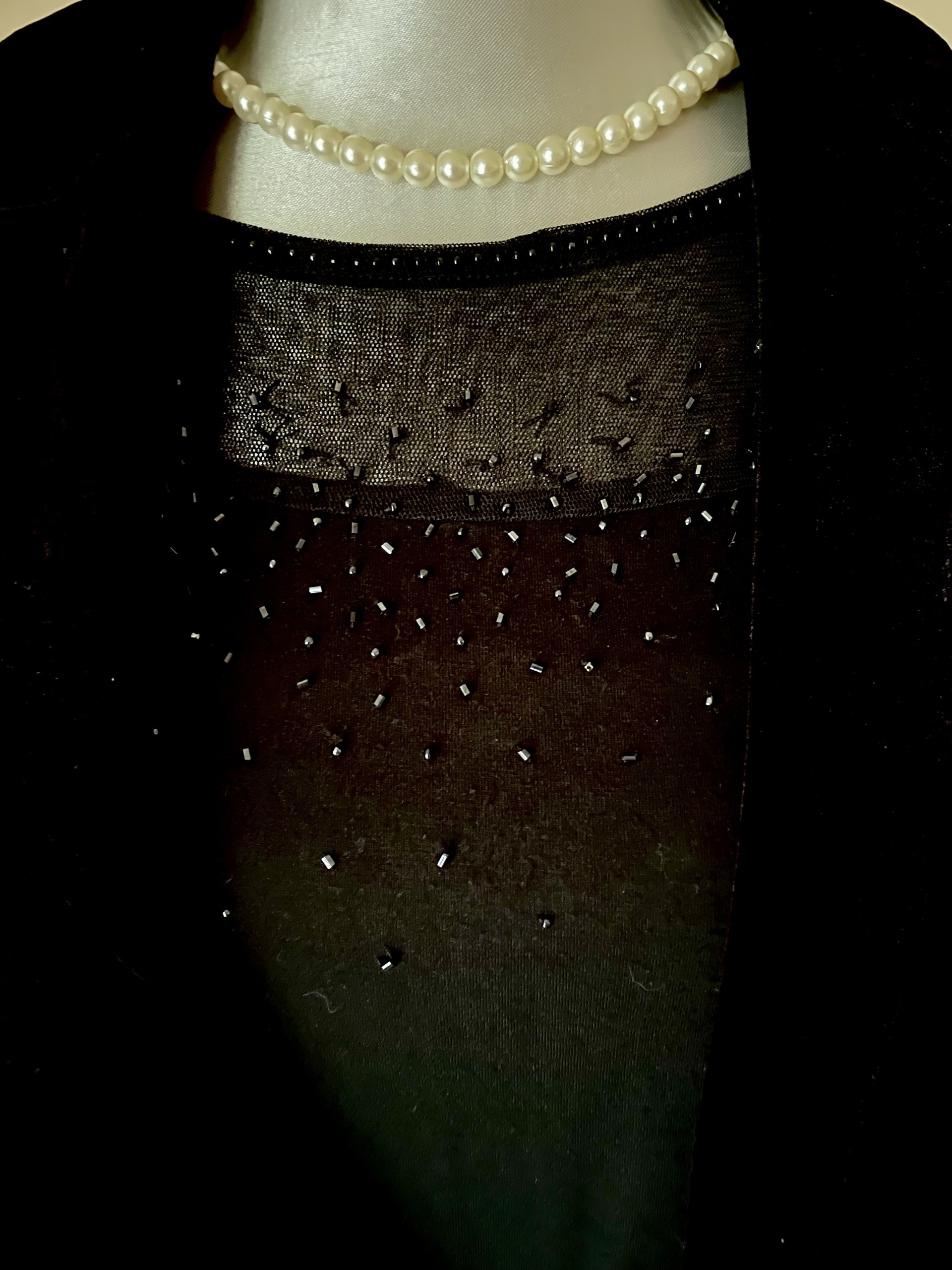 Sierlijke zwarte mouwloze top met subtiele glitterkraaltjes voor. Leuk voor een feestje of onder een colbert of bolero!